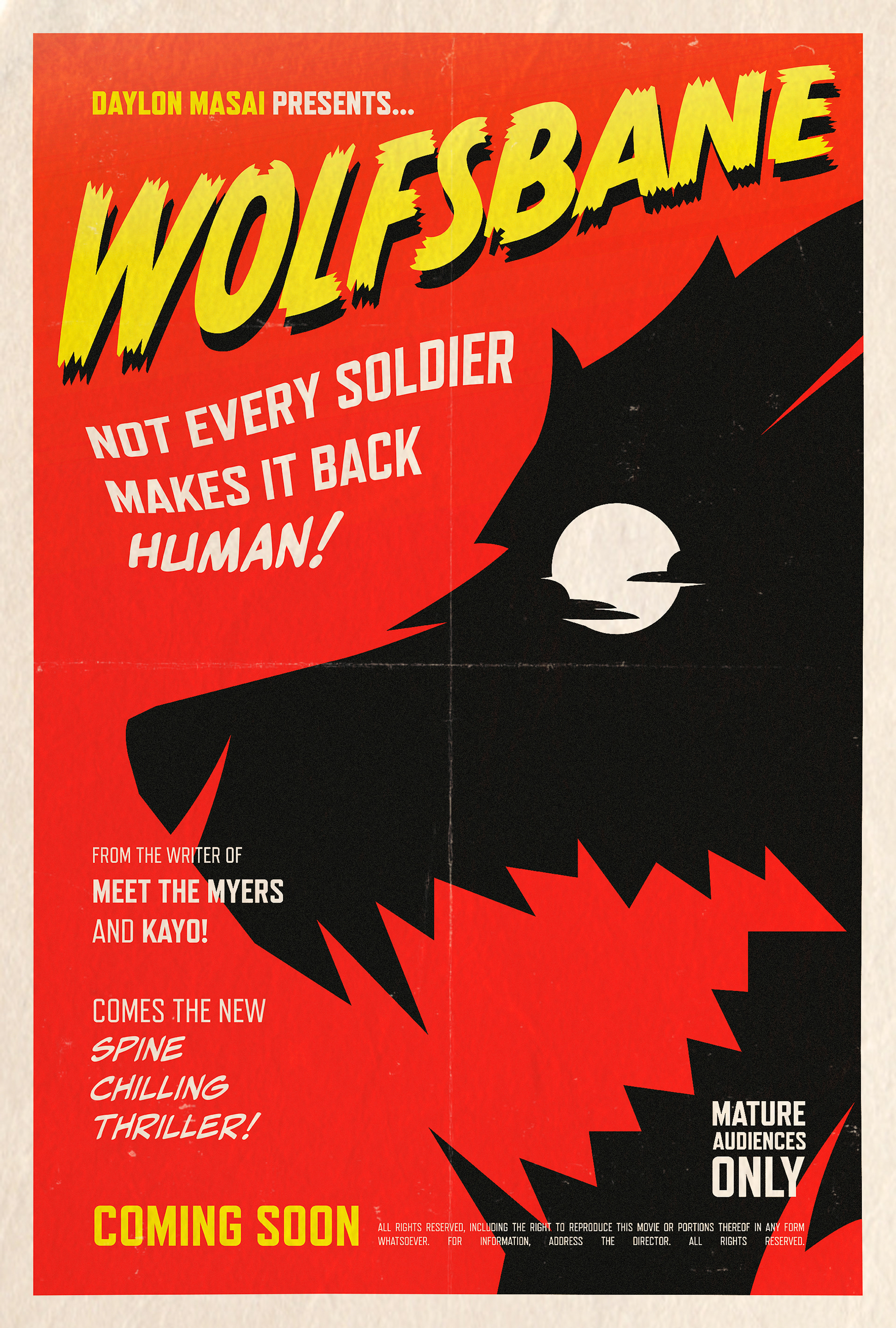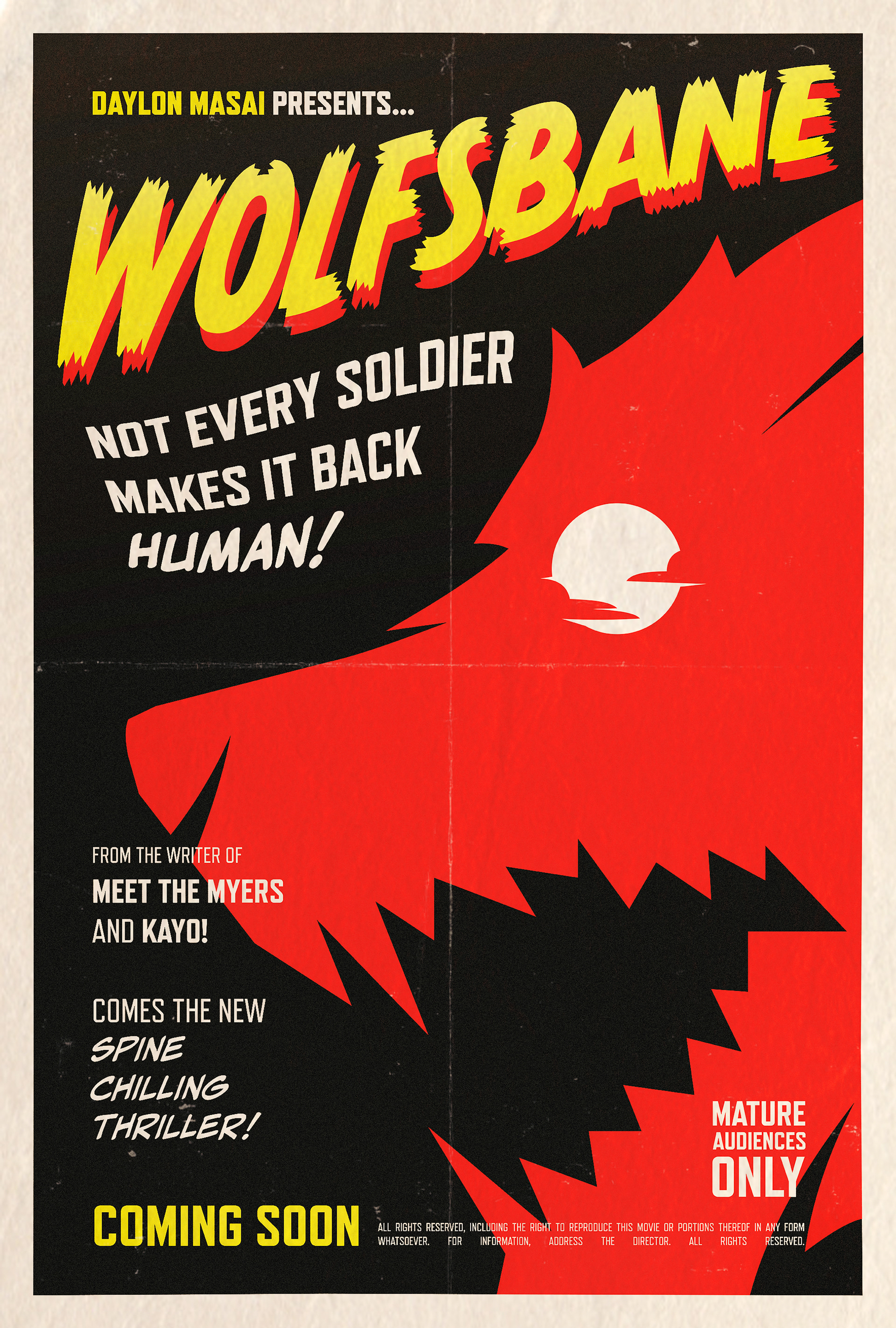 With these posters, most inspiration was drawn from classic, 1960s hand painted horror movie posters. Their use of striking colors and visuals would make for an impactful identity to pair with Wolfsbane, as a spin on the original wolf man tale.